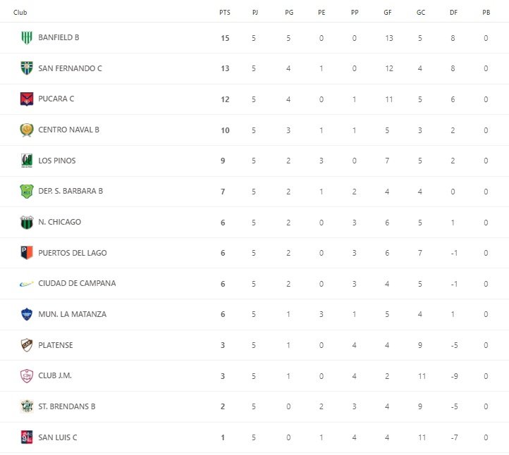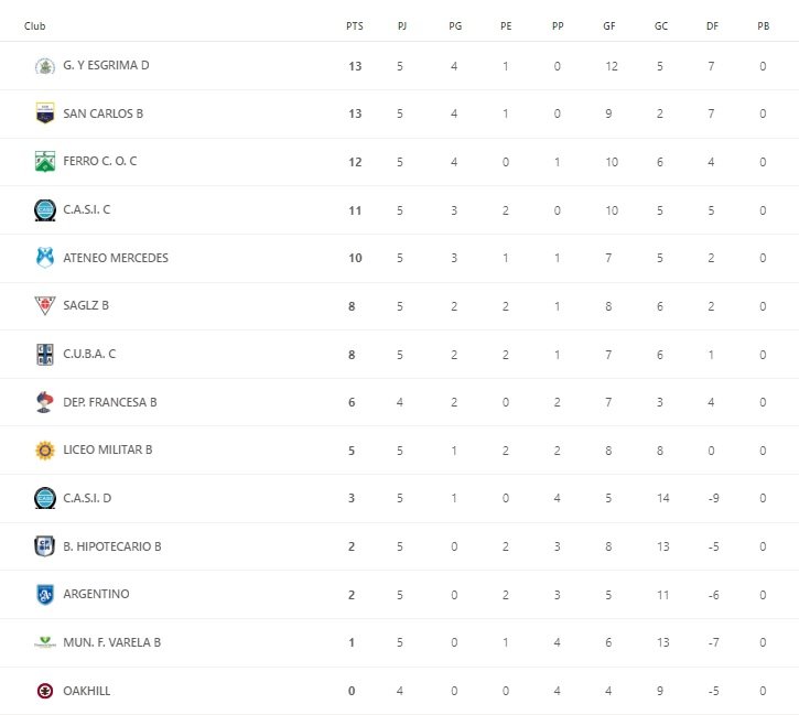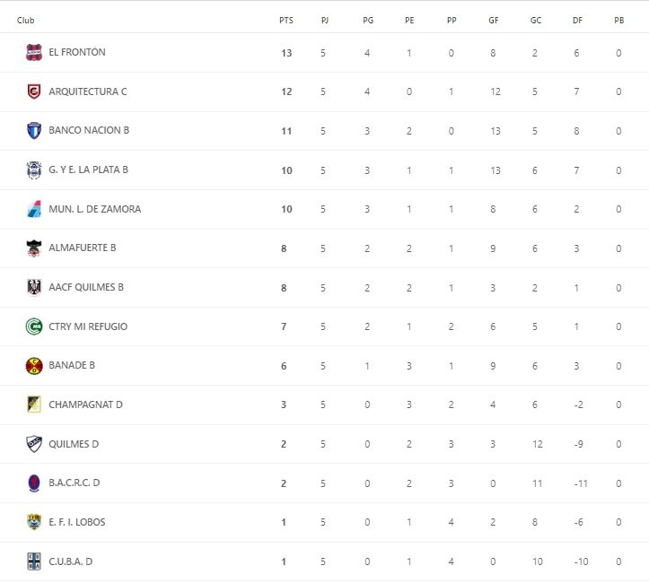 Tabla de Posiciones